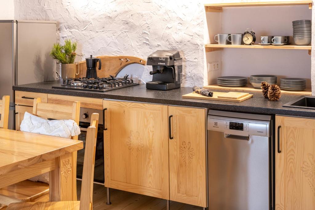 - W pełni wyposażona kuchnia: zmywarka, lodówka, piekarnik, ekspres do kawy, komplet naczyń i garnków, stół dla 6 osób